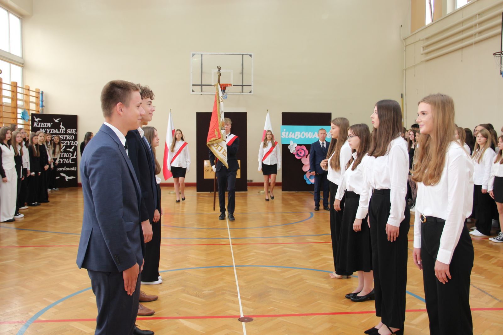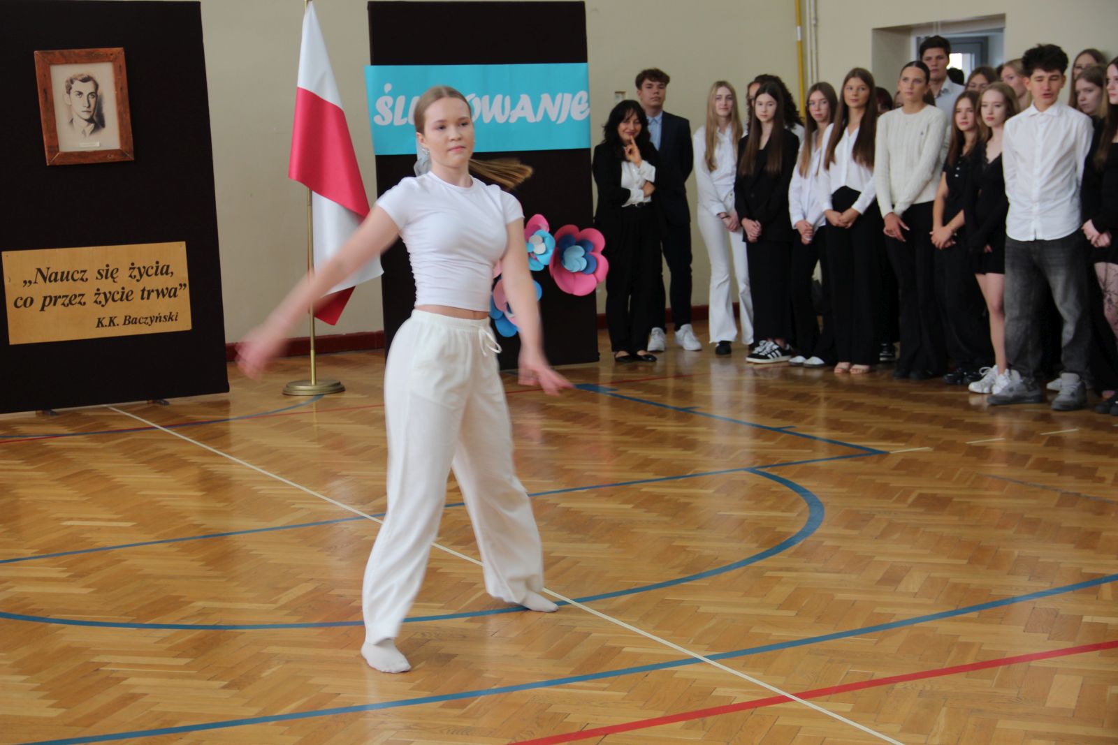 Uroczystość ślubowania wzbogacona o część artystyczną była okazją do zaprezentowania wyjątkowych talentów uczniów. Muzyczną podróż rozpoczęła Emilia Ejsmont (4f), która zaśpiewała utwór Na moście w Avignon. W etiudzie tanecznej towarzyszyła jej Natalia Perkowska (1g). Kacper Zasim (4a) zaskoczył wszystkich brawurowym wykonaniem utworu Nie pytaj o nią. Występ artystyczny został przygotowany pod kierunkiem Pani Karoliny Gasperskiej. Całość koordynowała Pani Anna Jabłońska.
