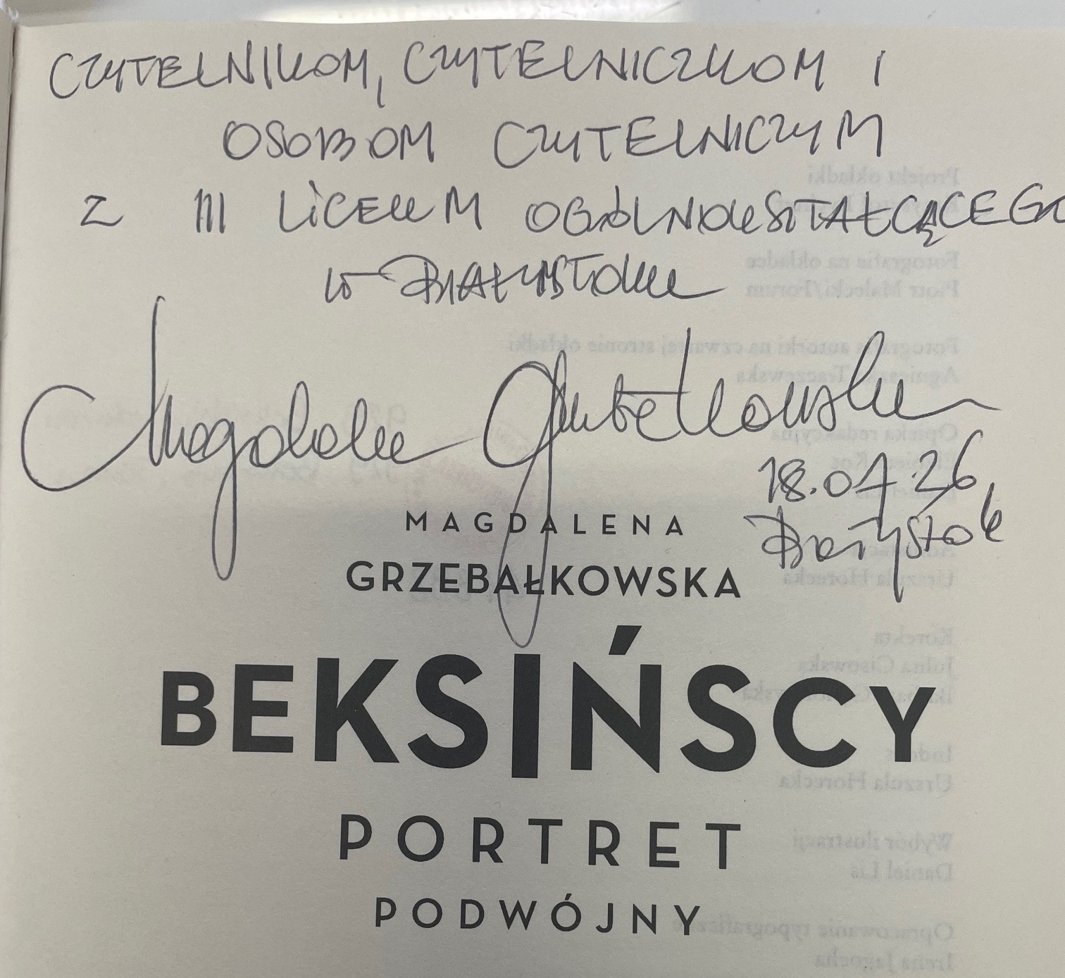 W bibliotece III LO można znaleźć książki z podpisami autorów goszczących na Targach Książki 2026 w Białymstoku.